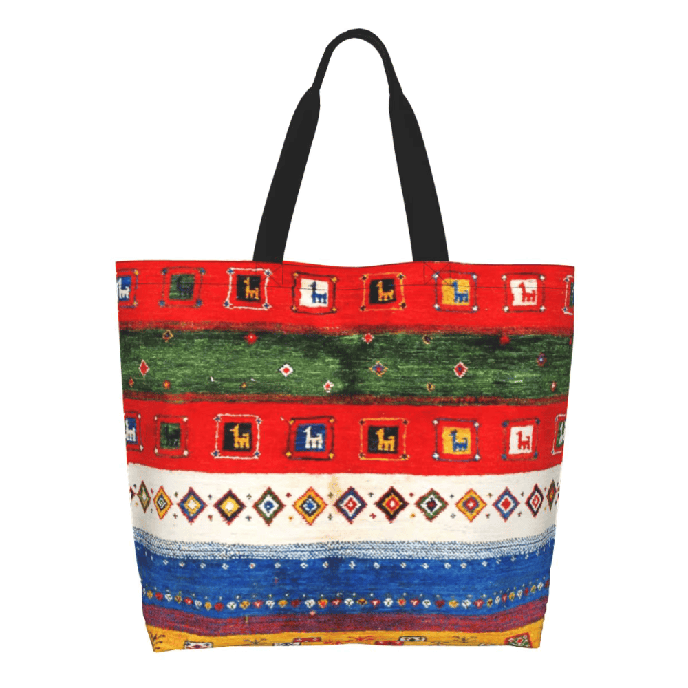 A reusable Moroccan Berber rug style tote bag works as a practical everyday carrier because of its large storage capacity, simple structure, and durable polyester fabric. The bag measures 50 × 40 × 15 cm, creating enough internal space for groceries, books, clothing, or travel essentials. The shape follows the traditional open market tote concept, allowing items to be placed inside quickly without complicated closures.