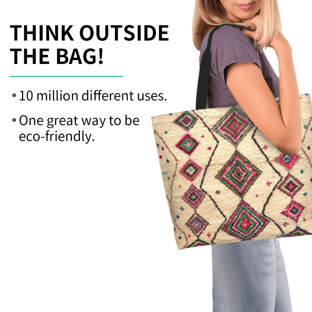 What makes a Moroccan Berber rug style tote bag practical for daily shopping?