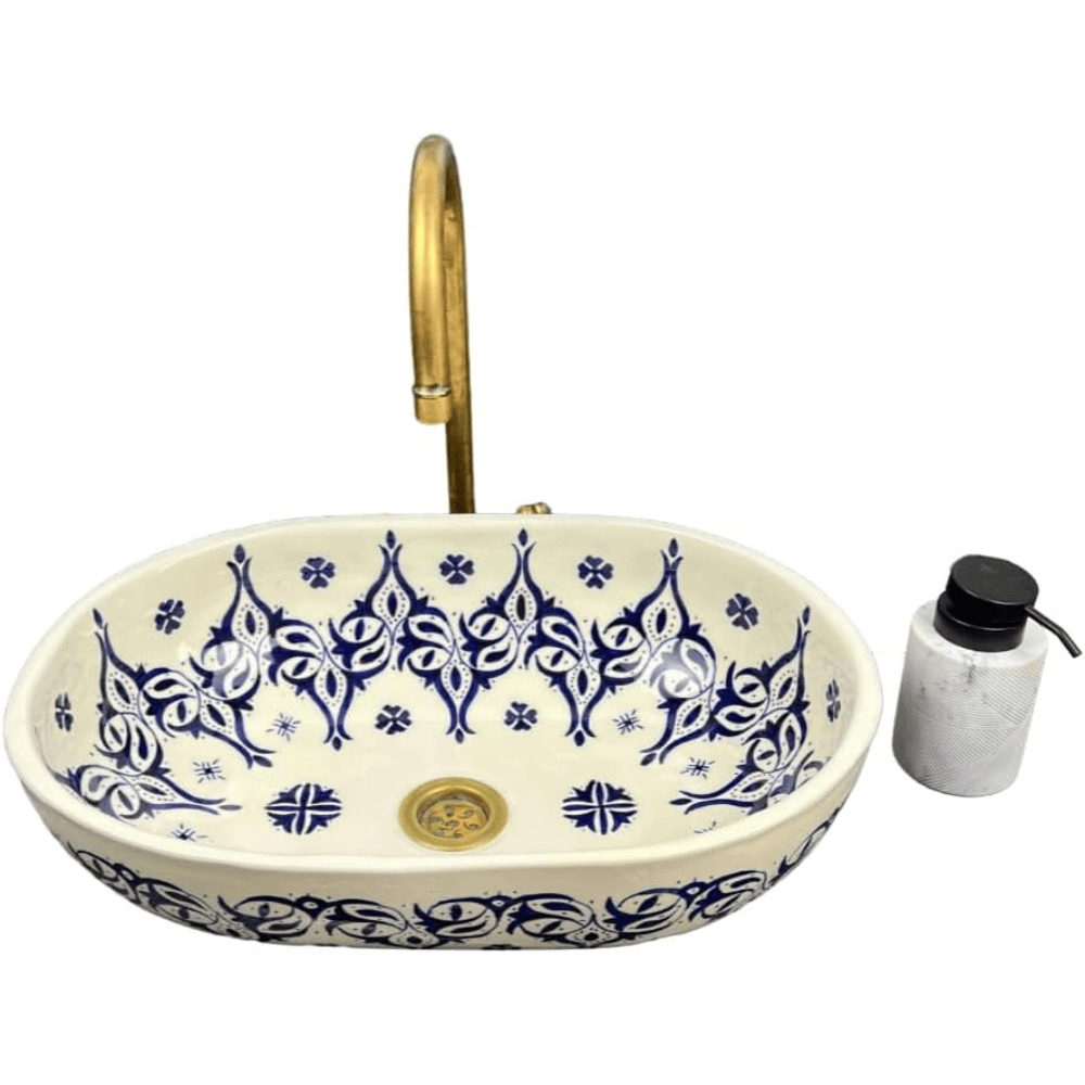 This oval ceramic vessel basin differs from factory produced sinks because it is shaped and finished by skilled potters instead of automated molds. Each basin is formed slowly by hand, which creates natural surface variations, softer transitions, and a depth that machine made sinks rarely achieve. The ceramic body uses vitrified clay fired at high temperatures, which hardens the structure and seals the surface. This firing process improves resistance to chipping, staining, and fading during everyday bathroom use. The glaze develops a smooth, even sheen that reflects light naturally and feels pleasant to the touch.