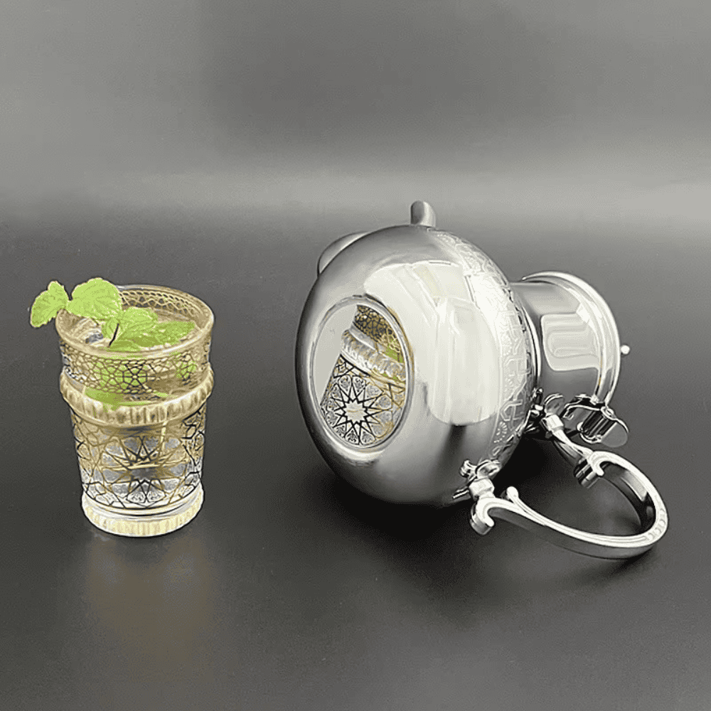 Stainless steel is widely used in tea kettles because it balances durability, hygiene, and heat resistance. This Moroccan engraved teapot uses stainless steel to ensure long term performance in kitchens, restaurants, or outdoor environments. Unlike aluminum or coated metals, stainless steel does not easily react with acidic liquids such as lemon or mint tea.