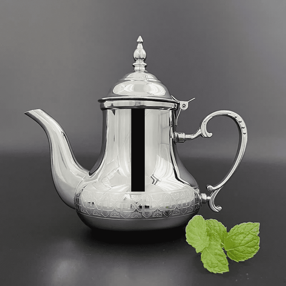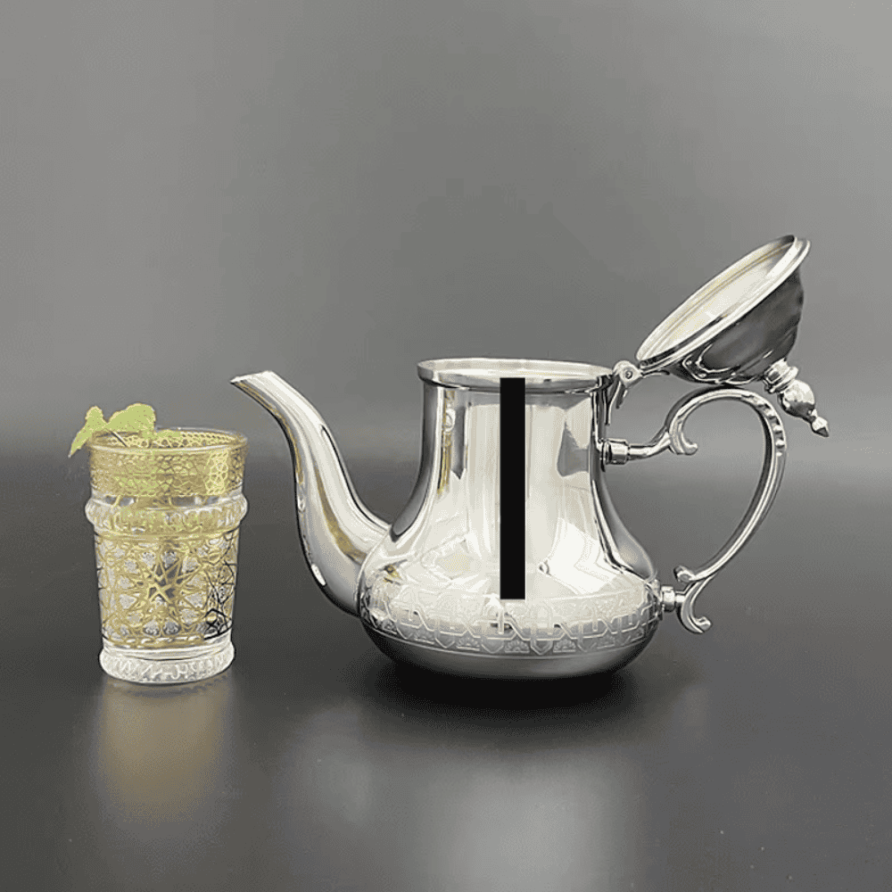 Moroccan teapots traditionally feature engraved or hammered designs inspired by geometric patterns. These patterns create visual depth and give the kettle a handcrafted appearance even when produced with modern techniques. In restaurants and tea cafés, engraved kettles are often preferred because they maintain a polished look over time.