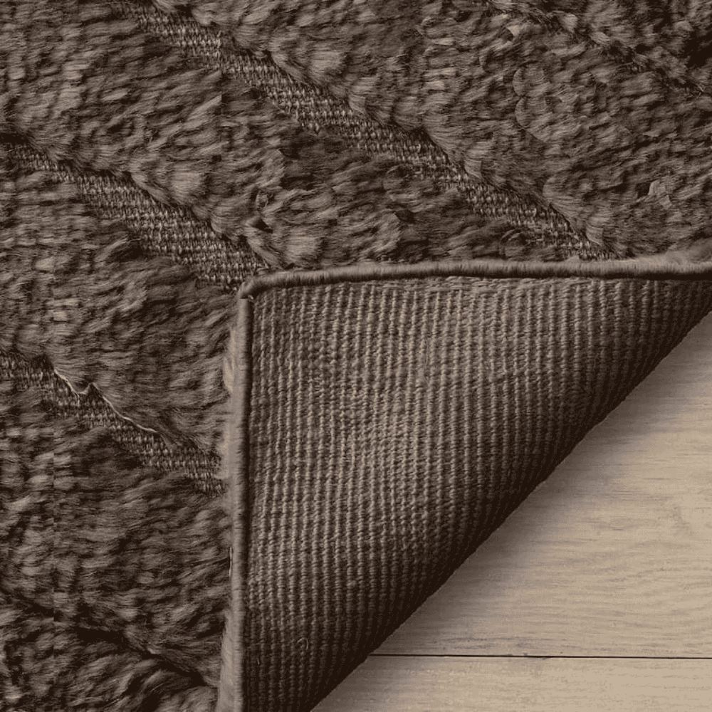 The Mochaccino color of this Moroccan rug offers a rich yet neutral tone that blends seamlessly into both light and dark spaces. It works as a grounding piece in a bright living room while adding warmth to a bedroom. The color complements wood furniture, leather seating, or modern minimalist decor, creating a balanced atmosphere. Its earthy shade is versatile enough to act as a focal point or as a subtle background texture. The muted elegance of Mochaccino tones helps soften sharp contrasts in interiors, providing a calming and cozy aesthetic without overwhelming the space.
