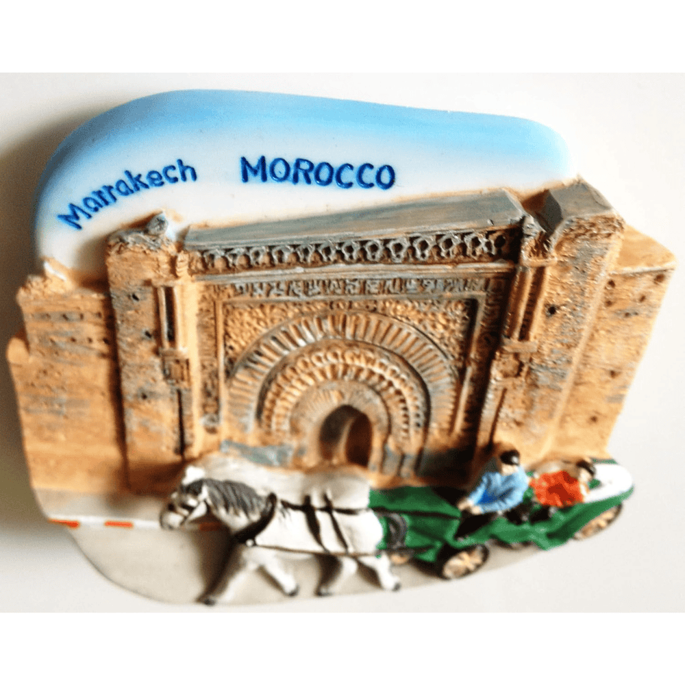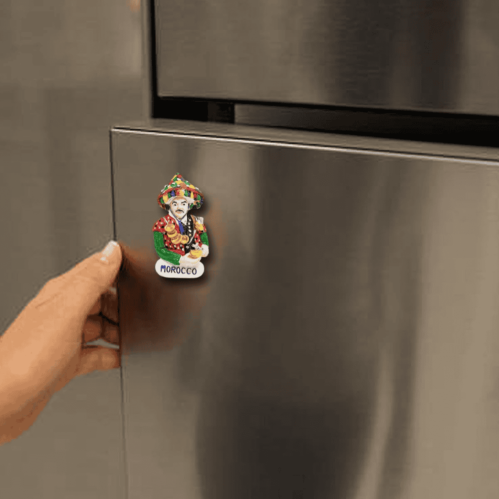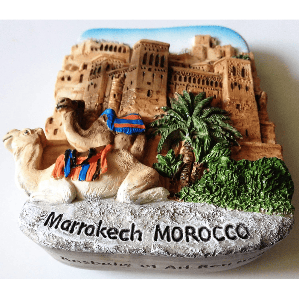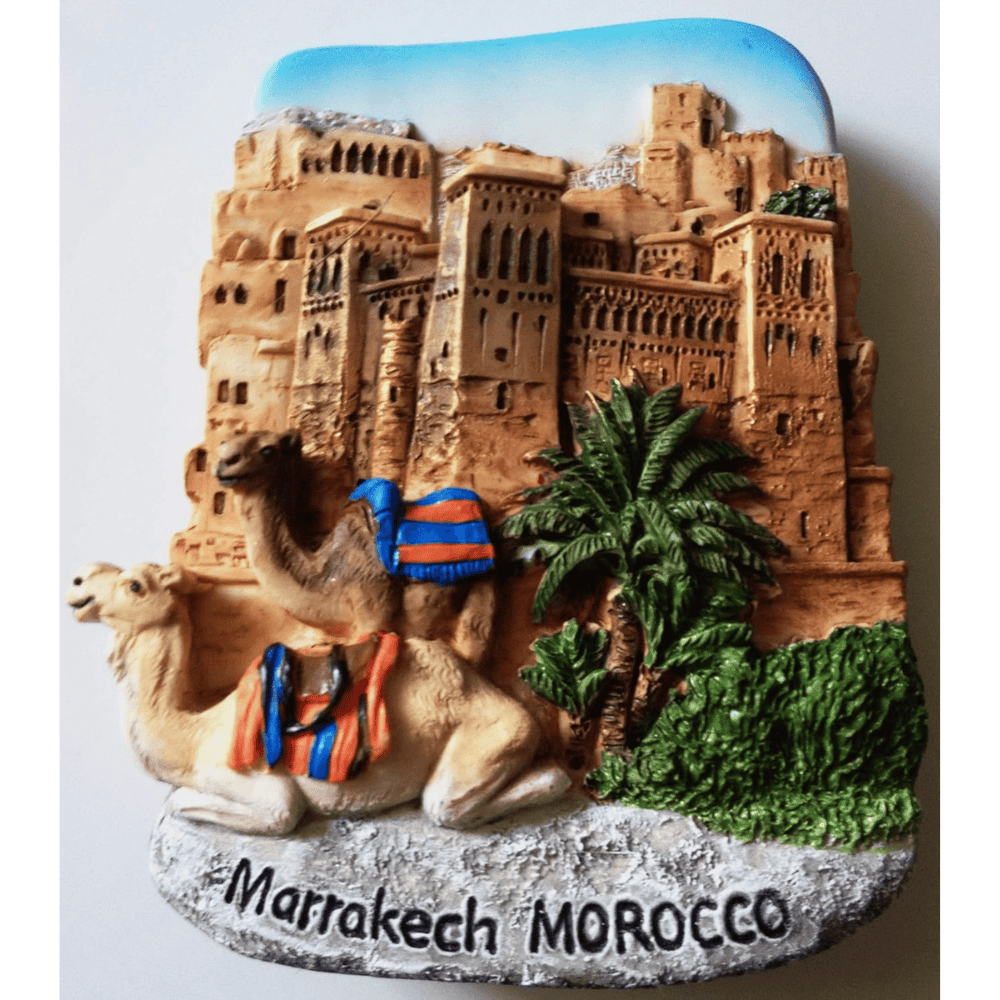 The magnet reflects elements often seen in Moroccan tourist attractions, including structured facades and earthy tones. These details introduce a visual reminder of North African heritage into everyday spaces. Even in small form, the piece communicates cultural identity through design cues and surface texture, allowing cultural appreciation in daily life.