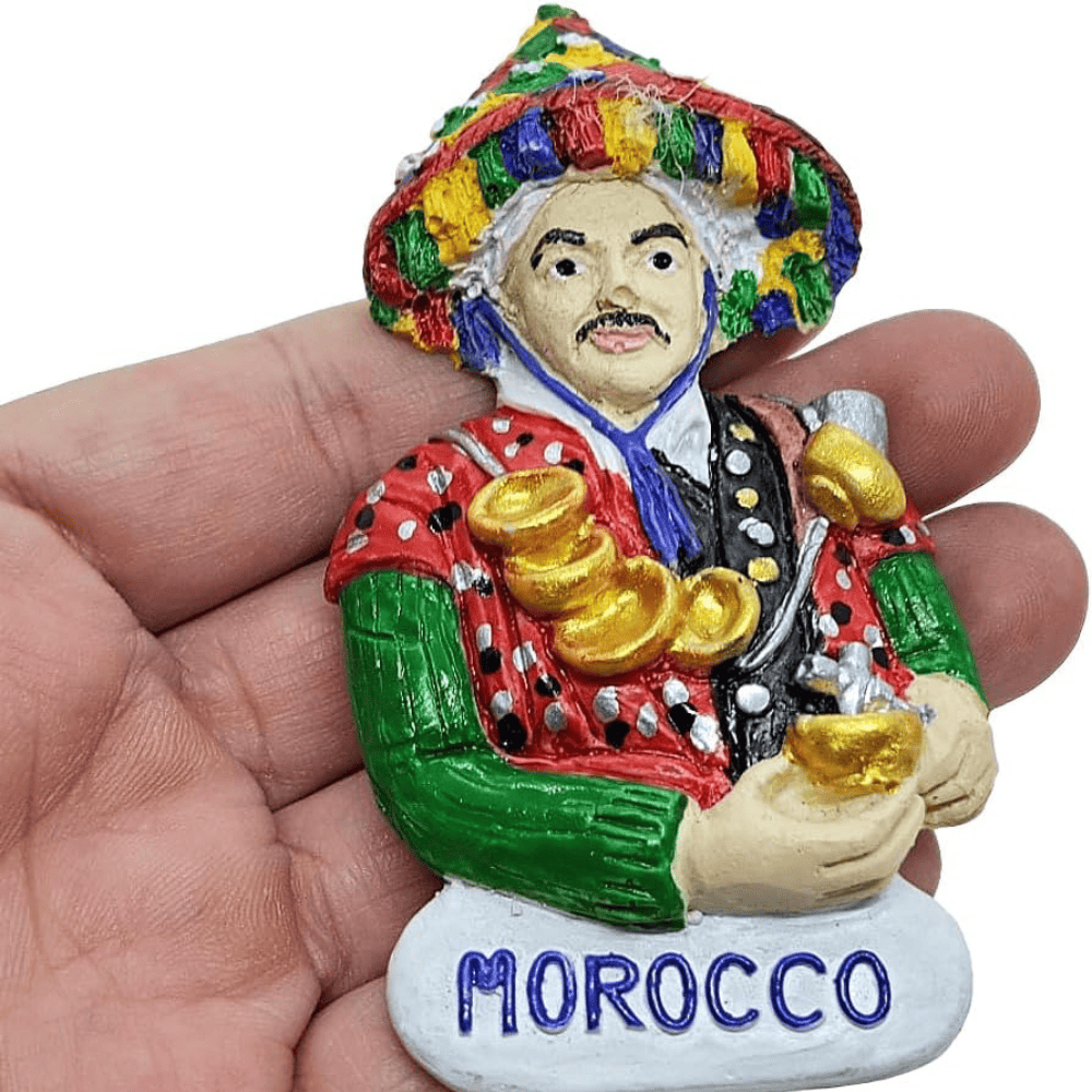 Each magnet is individually crafted by Moroccan artisans. The feature is manual production; the advantage is natural variation in detail; the benefit is owning a unique collectible rather than a factory-identical copy. Small differences may appear in brush strokes, shading intensity, or surface texture.