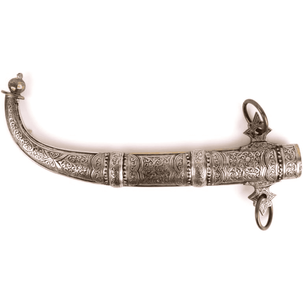 The scabbard is a central visual and cultural element of the Koummya. It does more than protect the blade; it defines how the dagger is presented and understood. Traditionally, the forward-pointing tip communicates refinement and social standing rather than aggression. Its shape and length are carefully matched to the blade to maintain harmony.