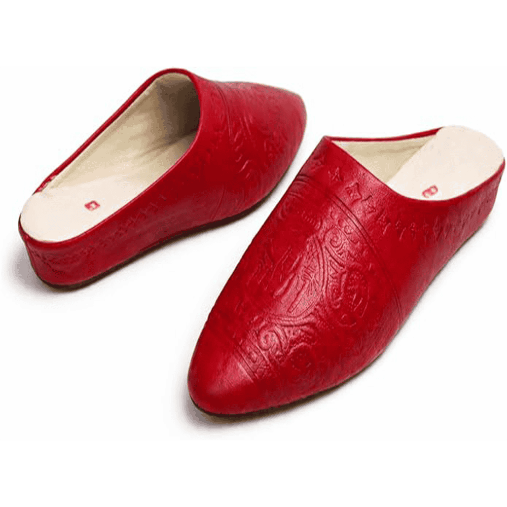 Moroccan babouche slippers are built around a simple idea: soft leather comfort with a structured shape that stays stable on the foot. Unlike many typical women’s house slippers made with foam, fabric, or synthetic soles, this design uses full leather construction, including a leather sole, which gives a firmer and more natural walking feel. That matters because leather adapts over time, slowly shaping to the foot instead of flattening like cheap padding.