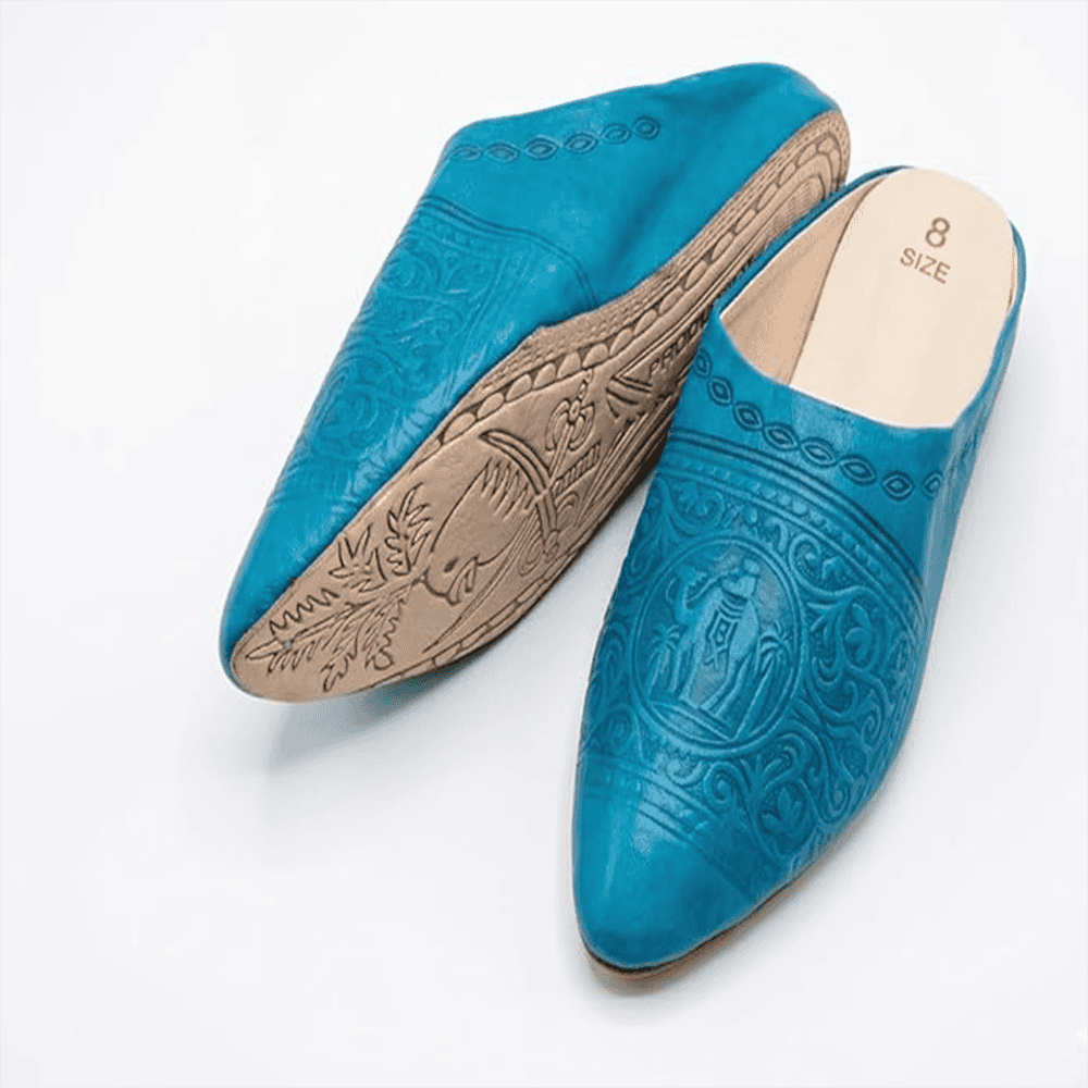 A pointed toe also visually lengthens the foot, giving a cleaner and more elegant look. That is why this style is popular for women’s Moroccan leather slippers. It blends indoor comfort with traditional craftsmanship.