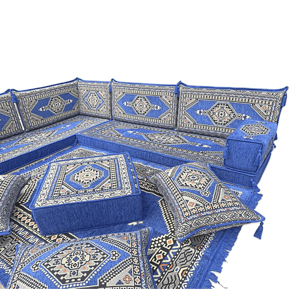 Arabic Majlis seating has a long tradition of creating communal spaces that are both functional and welcoming. This corner floor sofa blends that tradition with modern foam technology and modular construction. It allows for creating a warm and grounded atmosphere that invites conversation, rest, and shared experiences.